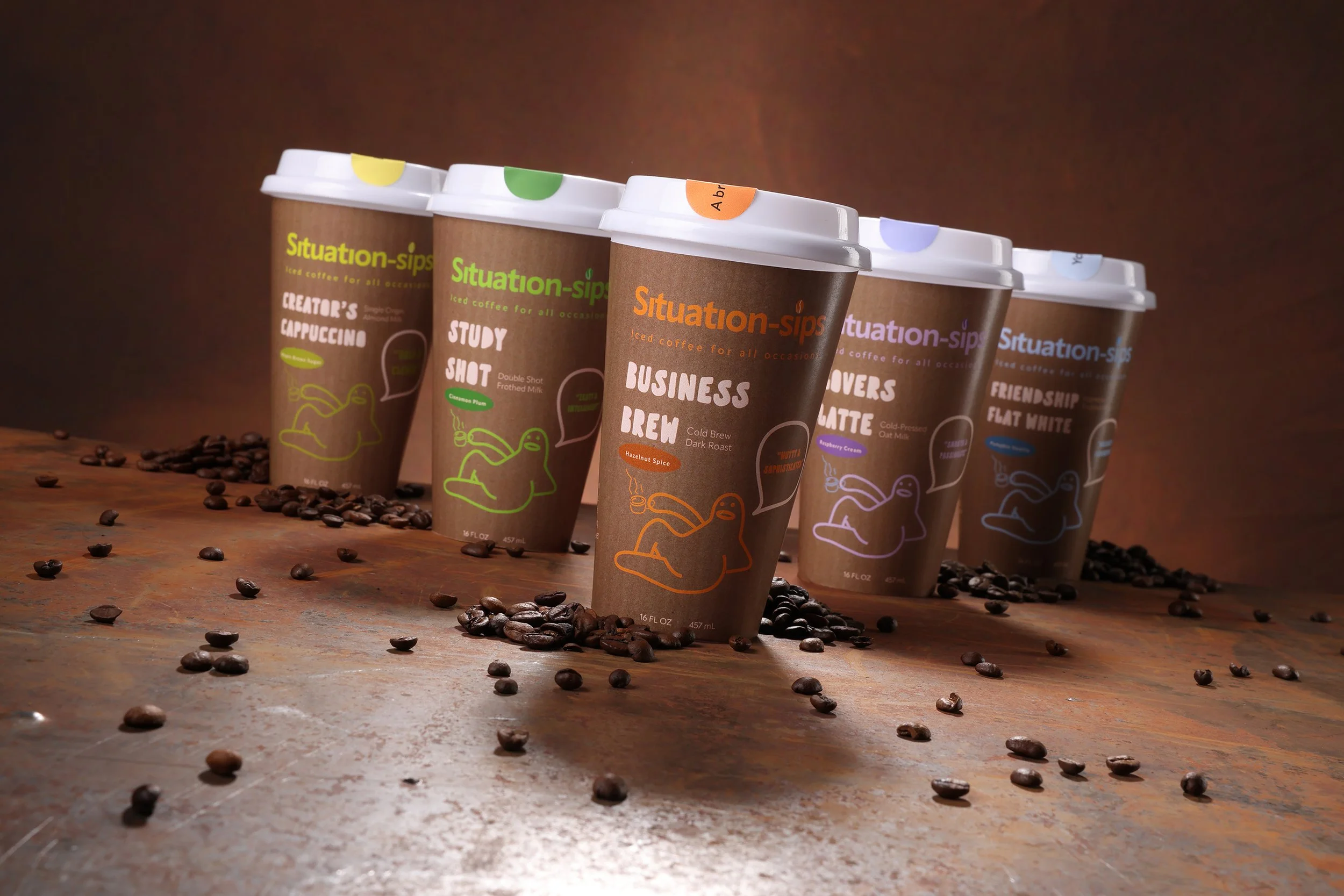 Situation-sips is a brand that aims to humorously mimic the many and different reasons for which people go to coffee shops, Situation-sips has five different to-go coffees, each which commemorate the many and different occasions for which coffee is enjoyed. Each coffee drink itself will imitate the flavor profile imagined for that particular occasion. The goal, to allow the customer to still have the coffee shop experience without the physical sensation of actually being there. Grab one on the way to work for your favorite coworker or prepare for an all-nighter with help from some caffeine! Situation-sips coffee will get your day started and maybe make you laugh out loud on your way to the register!